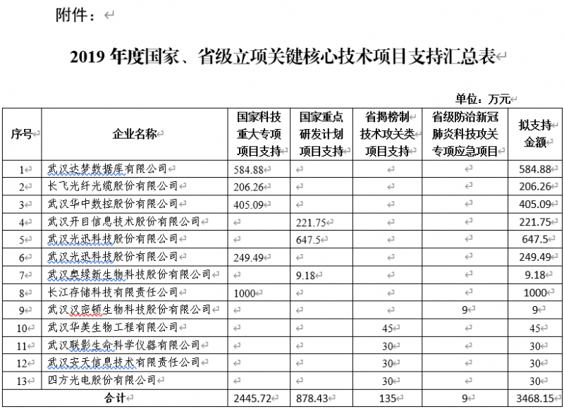按照《關(guān)于申報(bào)東湖高新區(qū)2019年度國家、省級立項(xiàng)關(guān)鍵核心技術(shù)項(xiàng)目支持的通知》要求以及管委會相關(guān)規(guī)定,經(jīng)企業(yè)申報(bào)、審核、實(shí)地考察等流程,現(xiàn)將支持結(jié)果予以公示,公示期為2020年6月9日-6月15日。如有異議,請于6月15日下午17:00前將書面意見(蓋公司/單位公章)反饋至管委會科創(chuàng)局,逾期不予受理。